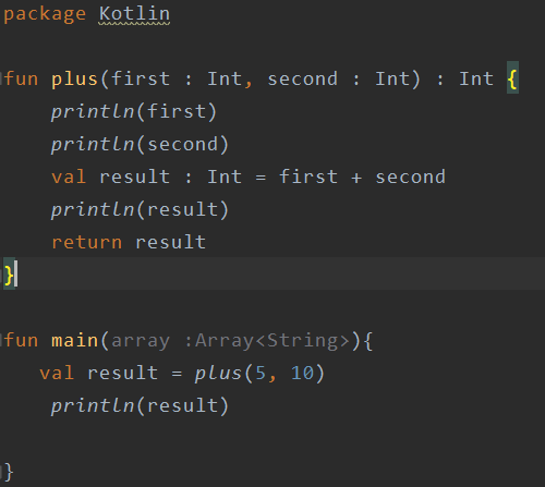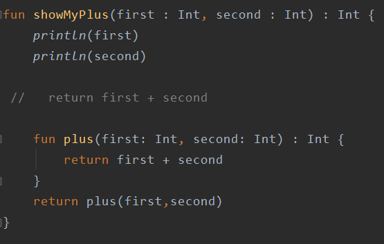 fun 함수명 (변수명 : 타입, 변수명 : 타입....) : 반환형 {