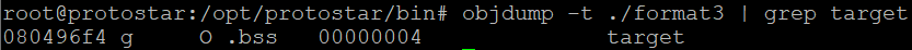 objdump -t ./format3 | grep target 을 해주어서 target의 주소를 알아낸다.