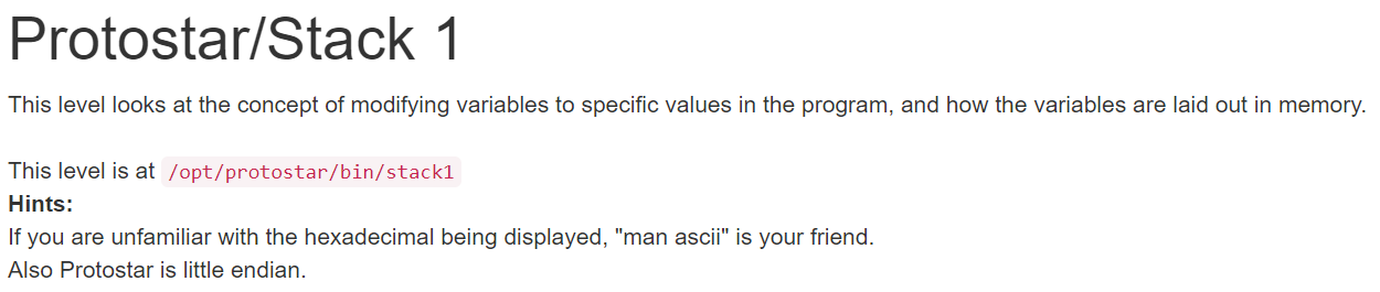 이번에는 Protostar Stack1번 문제 풀이를 진행하겠다.
