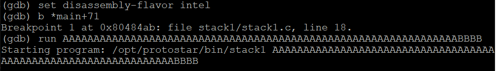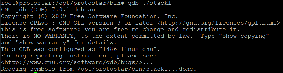 이를 넣고 실행하기 위해서 gdb ./stack1을 적어준다.