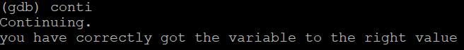 you have correctly got the variable to the right value를 출력할 수 있음을 한번 더 확인할 수 있다.