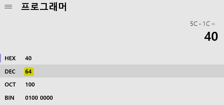 그래서 프로그래머용 계산기로 길이를 계산해보면 이렇게 나오는데,