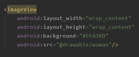 ImageView에서 src를 사용하고, @로 이미지의 경로를 나타내 주었다.