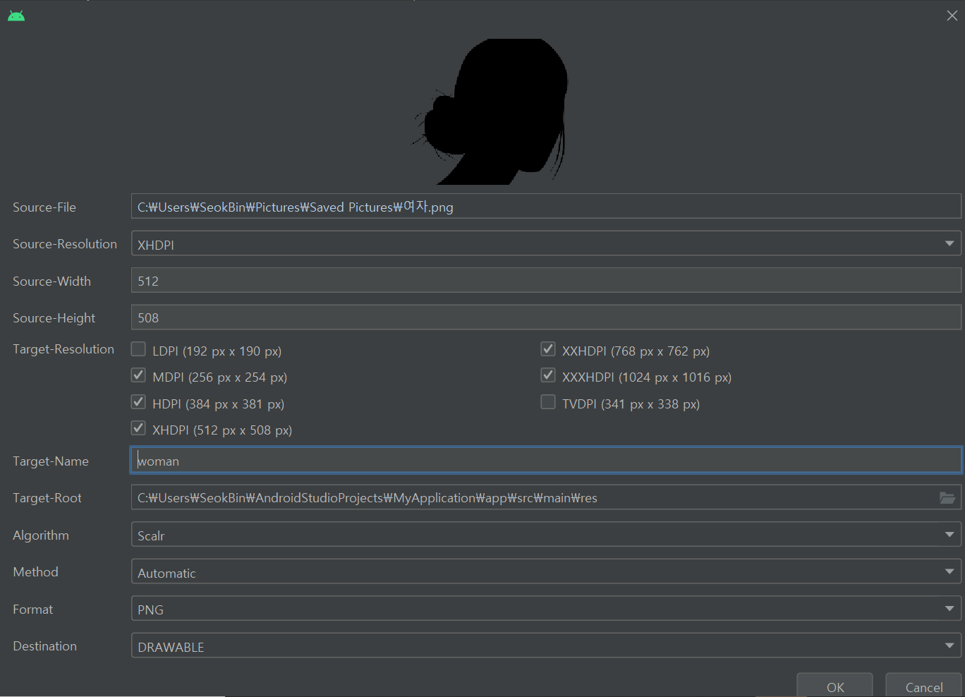 여기서 Target-Resolution은 해상도별로 만들어주는 것을 체크하고 있다.